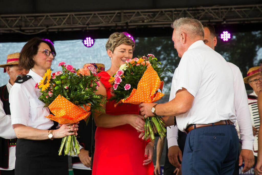 Zgodnie ze staropolską tradycją Wójt Krzysztof Urbaś, Przewodniczący Rady Gminy Niemce Marek Podstawka, Sekretarz Gminy Niemce Iwona Pulińska wspólnie ze starostami dożynek podzieli się chlebem z uczestnikami rolniczego święta.