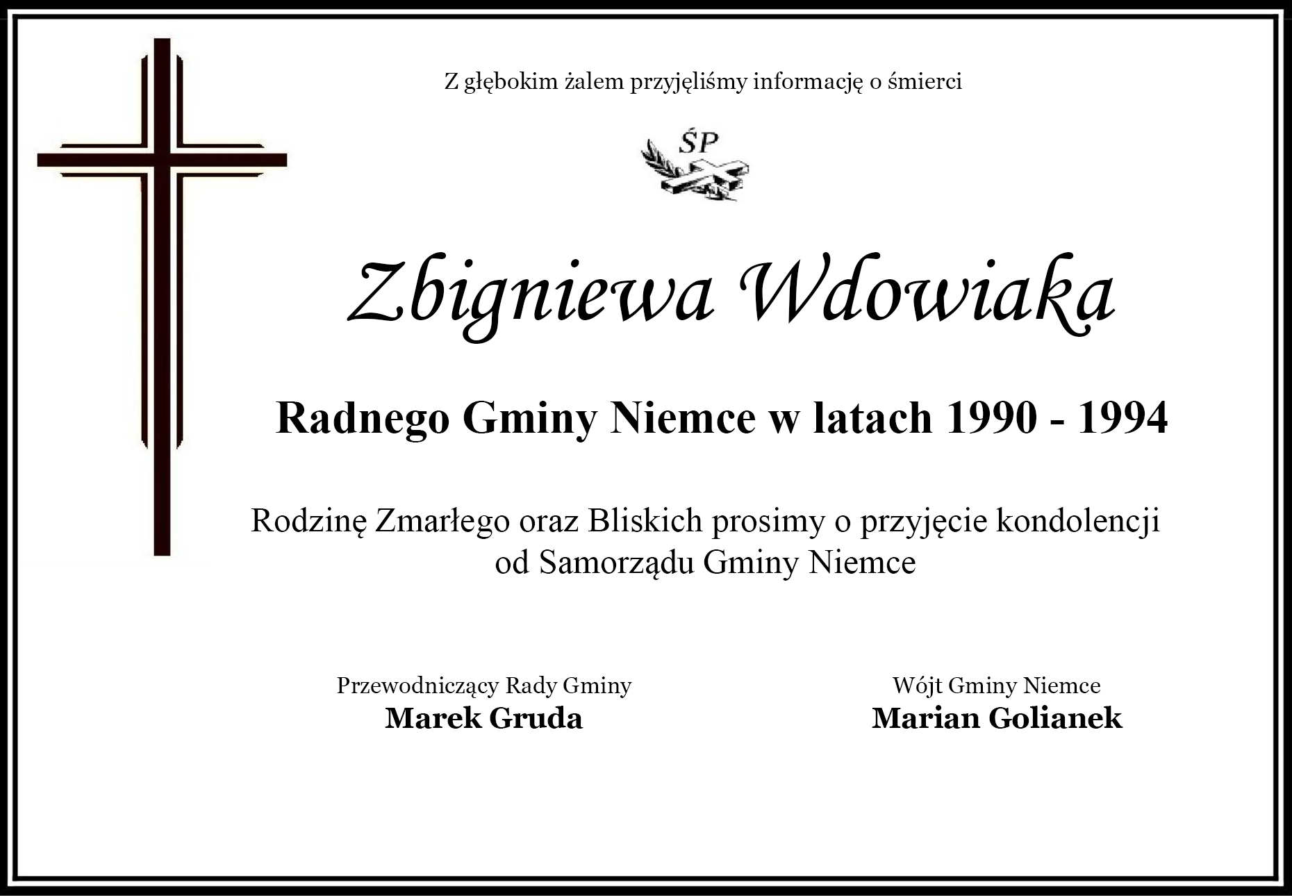 Z ogromnym smutkiem informujemy o śmierci Pana Zbigniewa Wdowiaka, Radnego Gminy Niemce w latach 1990 – 1994, wieloletniego strażaka OSP w Majdanie Krasienińskim.