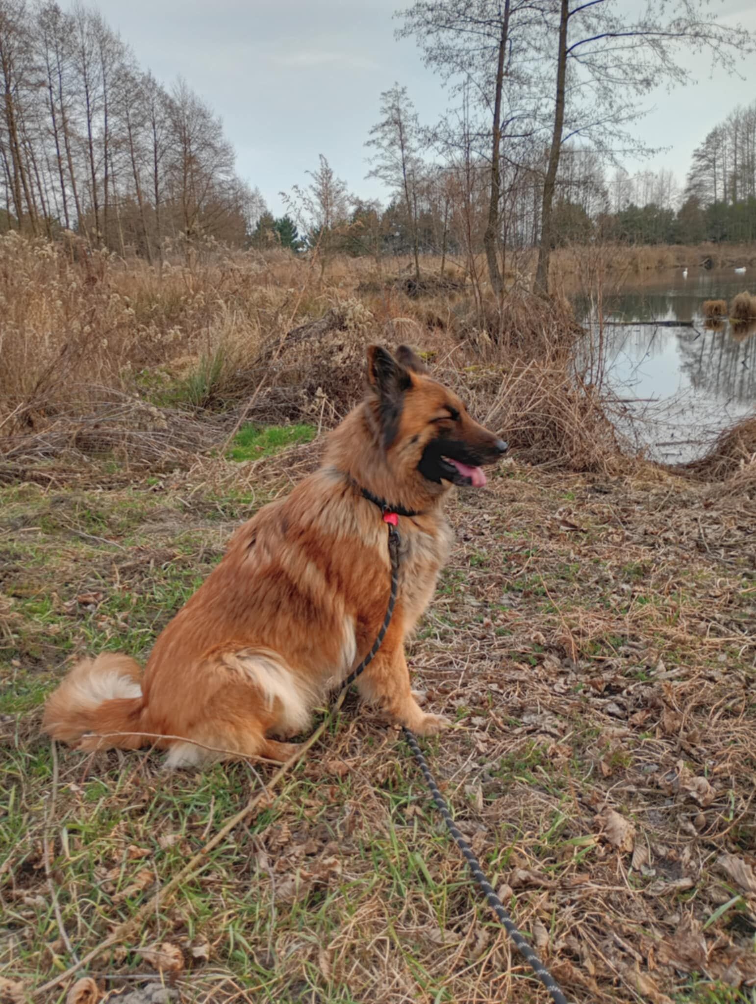 Dafi to piękna, długowłosa sunia w typie owczarka niemieckiego. Ma około 4–5 lat i zachwyca nie tylko wyglądem, ale też manierami.