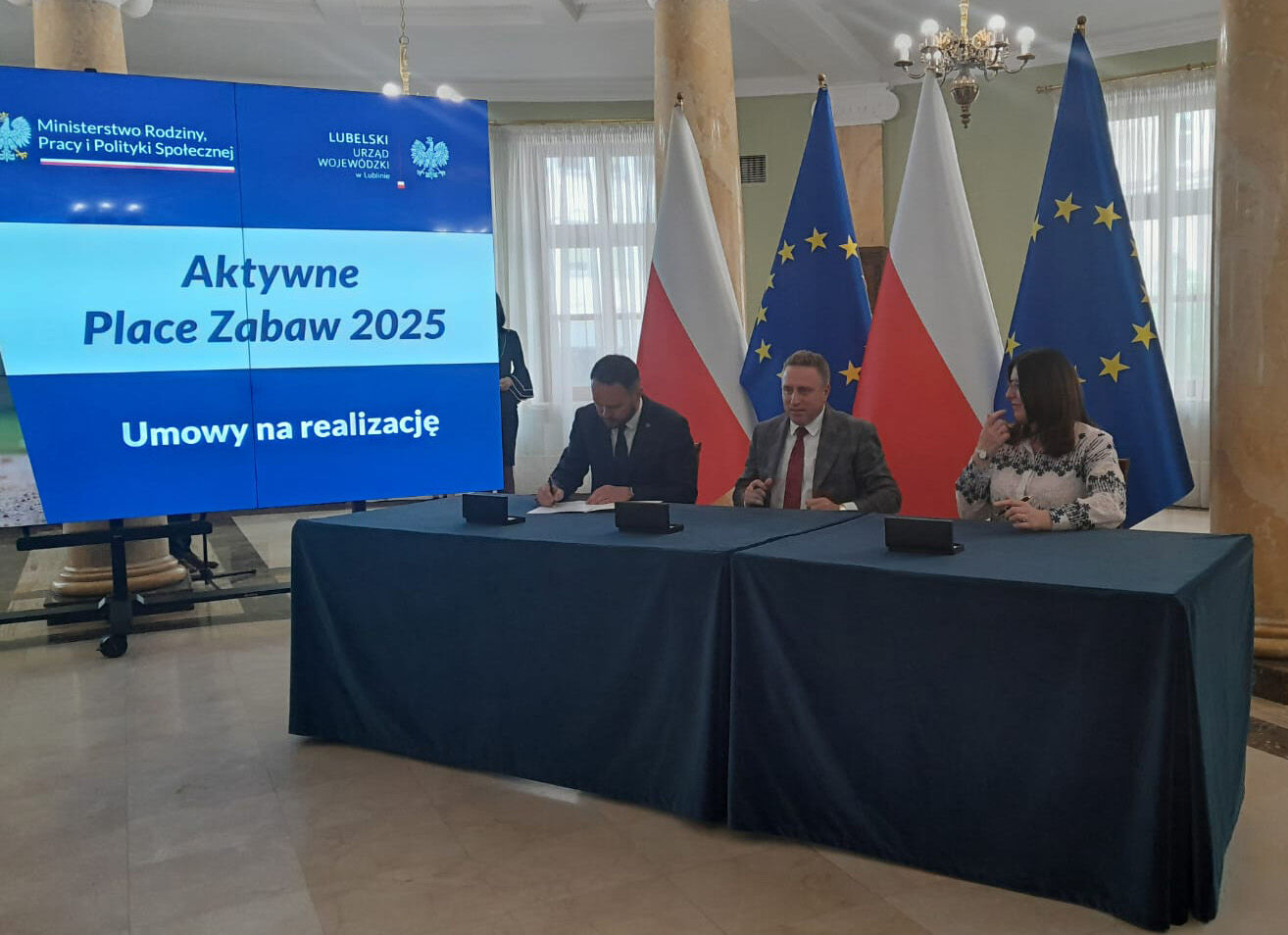 W środę 11 czerwca 2025 roku w Urzędzie Wojewódzkim w Lublinie została podpisana umowa o dofinansowanie w ramach programu "Aktywne place zabaw 2025".